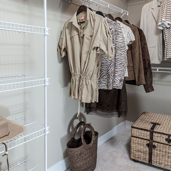 Glass World’s wood shelving system works with both walk-in and reach-in style closets. We will work with you and your needs to make the perfect space – all units can be made custom to fit.
