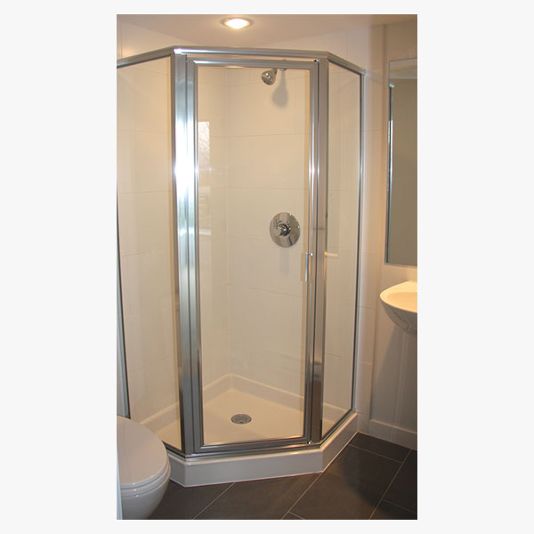 The framed Neo Angle shower enclosure is designed as a space saver and enables the installation of a shower into the corners of a bathroom.